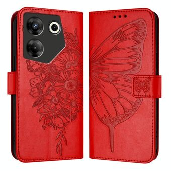 For Tecno Camon 20 Premier 5G Embossed Butterfly Leather Phone Case(Red)