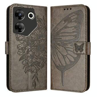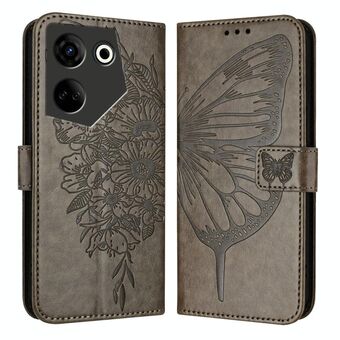 For Tecno Camon 20 Premier 5G Embossed Butterfly Leather Phone Case(Grey)