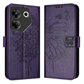 For Tecno Camon 20 Premier 5G Embossed Butterfly Leather Phone Case(Dark Purple)