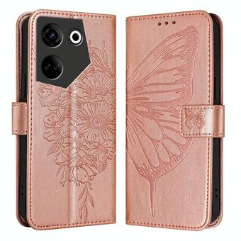 For Tecno Camon 20 Premier 5G Embossed Butterfly Leather Phone Case(Rose Gold)