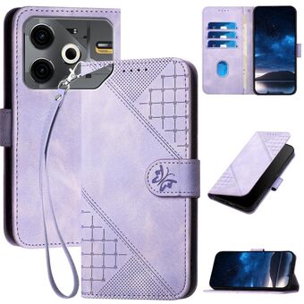 For Tecno Pova 6 Neo Grid Butterfly Embossed Pattern Leather Phone Case with Lanyard(Light Purple)
