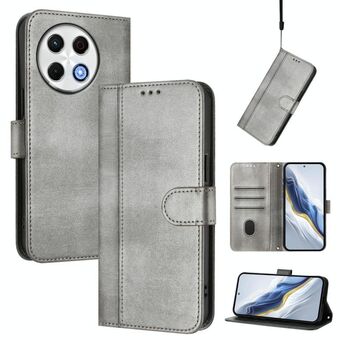 For Tecno Spark 30 Pro 4G Line Splicing Buckle Retro Leather Phone Case(Grey)