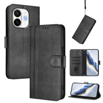 For Tecno Spark 30C 5G / Pop 9 5G Line Splicing Buckle Retro Leather Phone Case(Black)