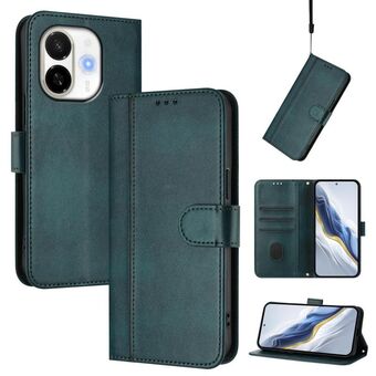 For Tecno Spark 30C 4G Line Splicing Buckle Retro Leather Phone Case(Dark Green)