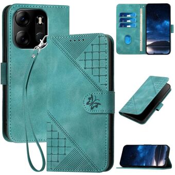 For Tecno Pop 7 / 7 Pro Grid Butterfly Embossed Pattern Leather Phone Case with Lanyard(Black)