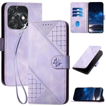 For Tecno Pop 8 4G Grid Butterfly Embossed Pattern Leather Phone Case with Lanyard(Light Purple)