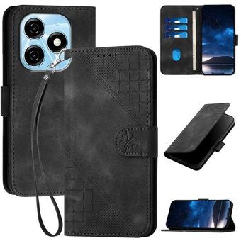 For Tecno Spark 20 4G / 20C 4G Grid Butterfly Embossed Pattern Leather Phone Case with Lanyard(Black)