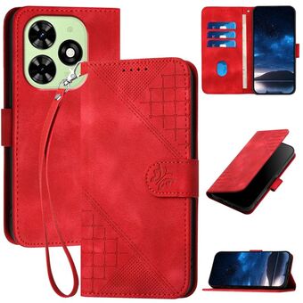 For Tecno Pop 8 4G Grid Butterfly Embossed Pattern Leather Phone Case with Lanyard(Red)
