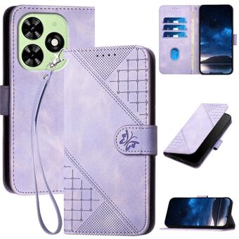 For Tecno Spark 20 4G / 20C 4G Grid Butterfly Embossed Pattern Leather Phone Case with Lanyard(Light Purple)