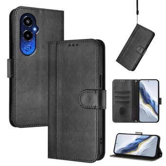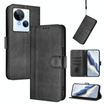For Tecno Spark 10 5G Line Splicing Buckle Retro Leather Phone Case(Black)