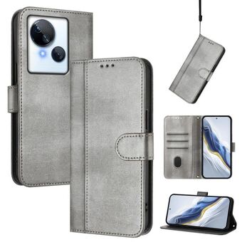 For Tecno Spark 10 5G Line Splicing Buckle Retro Leather Phone Case(Grey)