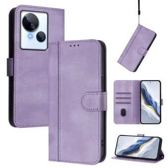 For Tecno Spark 10 Pro 4G Line Splicing Buckle Retro Leather Phone Case(Purple)