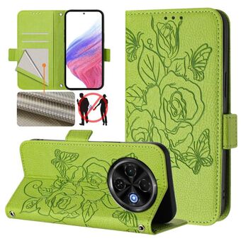For Tecno Spark 30C Embossed Rose RFID Anti-theft Leather Phone Case(Green)