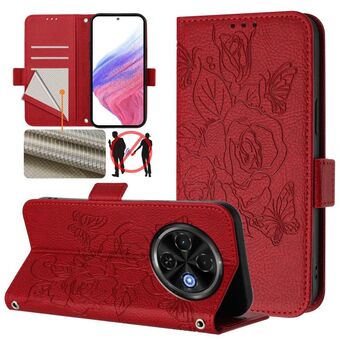 For Tecno Spark 30C Embossed Rose RFID Anti-theft Leather Phone Case(Red)