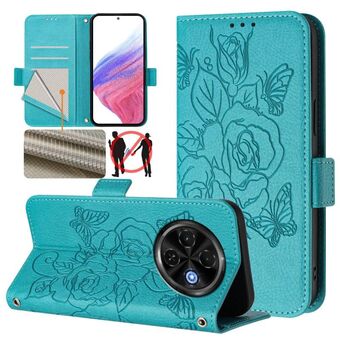 For Tecno Camon 40 4G Embossed Rose RFID Anti-theft Leather Phone Case(Light Blue)