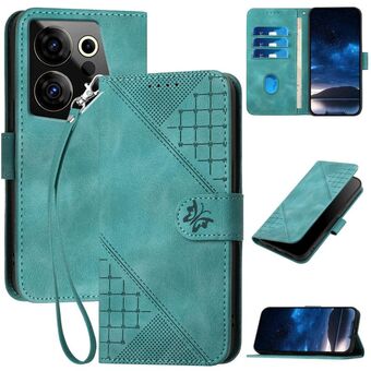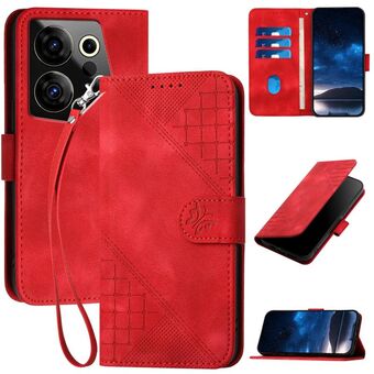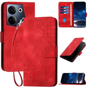 For Tecno Pova 3 Grid Butterfly Embossed Pattern Leather Phone Case with Lanyard(Red)