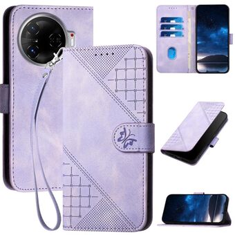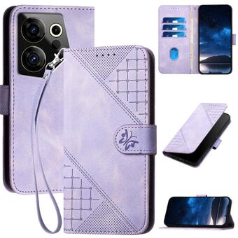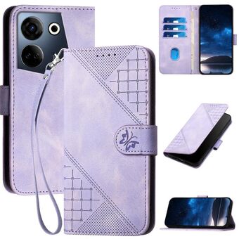 For Tecno Pova 3 Grid Butterfly Embossed Pattern Leather Phone Case with Lanyard(Light Purple)
