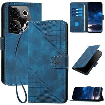 For Tecno Pova 3 Grid Butterfly Embossed Pattern Leather Phone Case with Lanyard(Dark Blue)