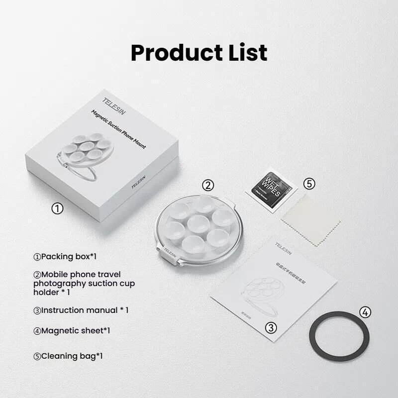 8. Packing list: suction cup holder x 1, magnetizing sheet x 1, cleaning kit x 1, manual x 1