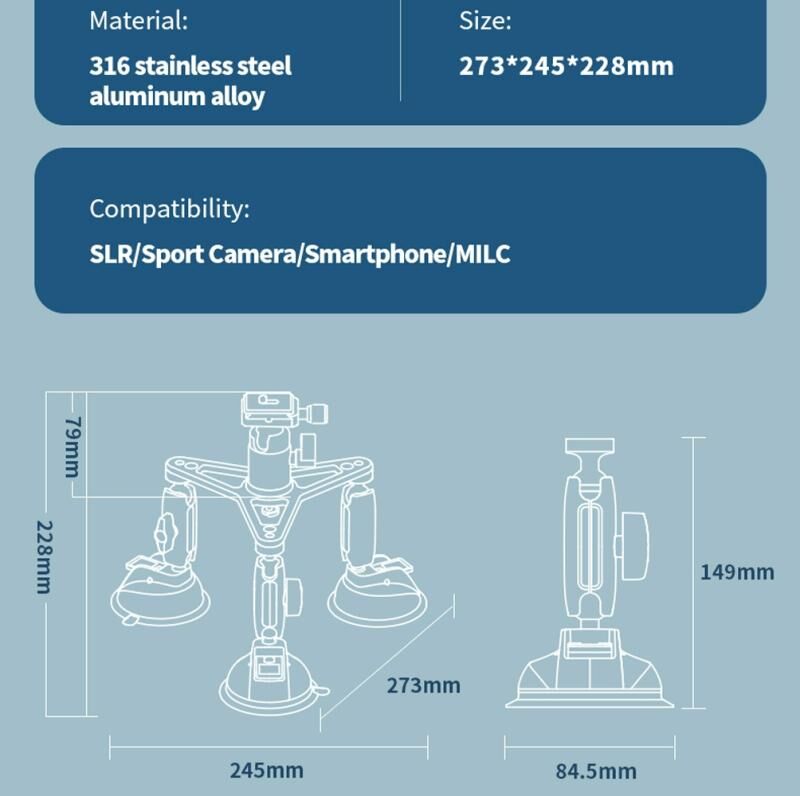 5. Ευρεία προσαρμοστικότητα: Κατάλληλο για όλες τις δημοφιλείς αθλητικές κάμερες, κινητά τηλέφωνα και DSLR κάμερες έως 1,5kg