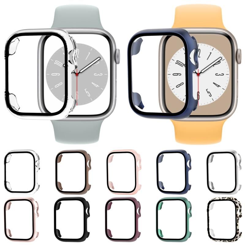Tempered Glass Film PC Watch Case For Apple Watch Series 9 / 8 / 7 41mm(Midnight Blue)