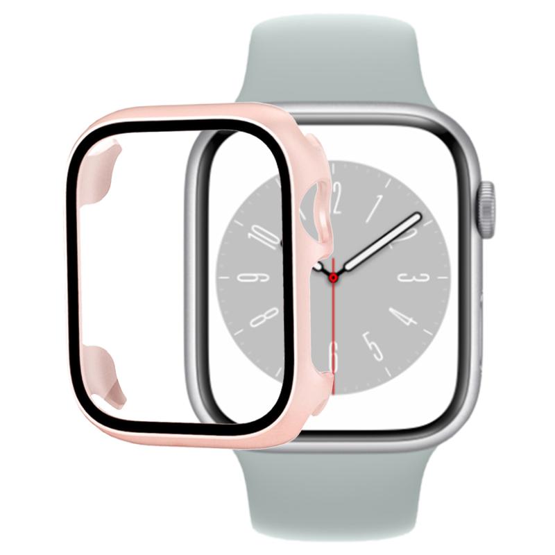 Tempered Glass Film PC Watch Case For Apple Watch Series 9 / 8 / 7 45mm(Pink)