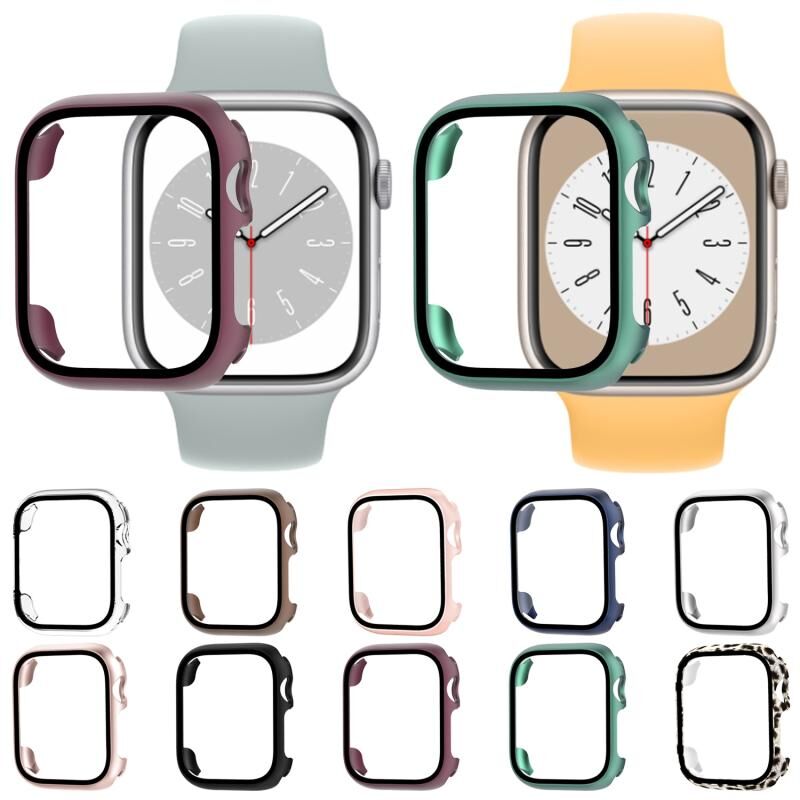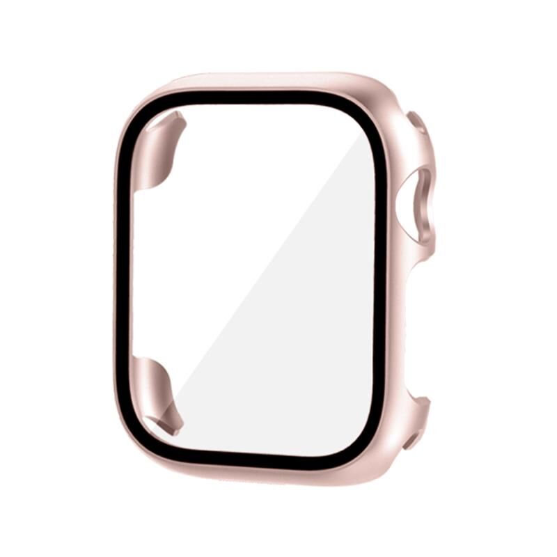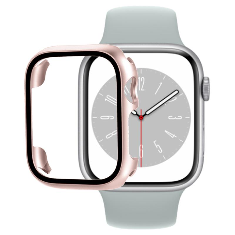 Tempered Glass Film PC Watch Case For Apple Watch Series 9 / 8 / 7 45mm(Rose Gold)