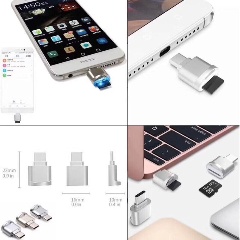 Προσαρμογέας OTG από Κράμα Αλουμινίου με θύρα TF σε USB-C / Type-C (αρσενικό) και μπρελόκ (Γκρι)