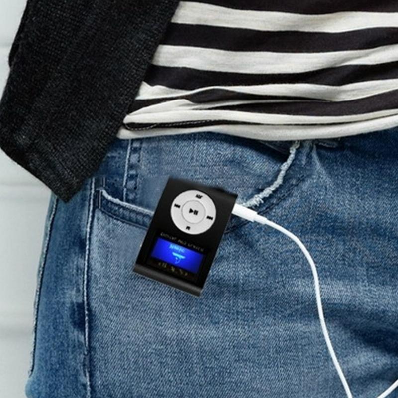 TF / Micro SD Card Slot MP3 Player with LCD Screen, Metal Clip(Black)