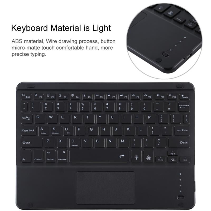 Πληκτρολόγιο Bluetooth TG-102BCS αποσπώμενο λευκό + Θήκη Tablet από δερματίνη μικροϊνών για iPad 10.2 ιντσών / iPad Air (2019), με Touch Pad & Φωτισμό & Θήκη στυλό & Υποστήριξη (Μαύρο)