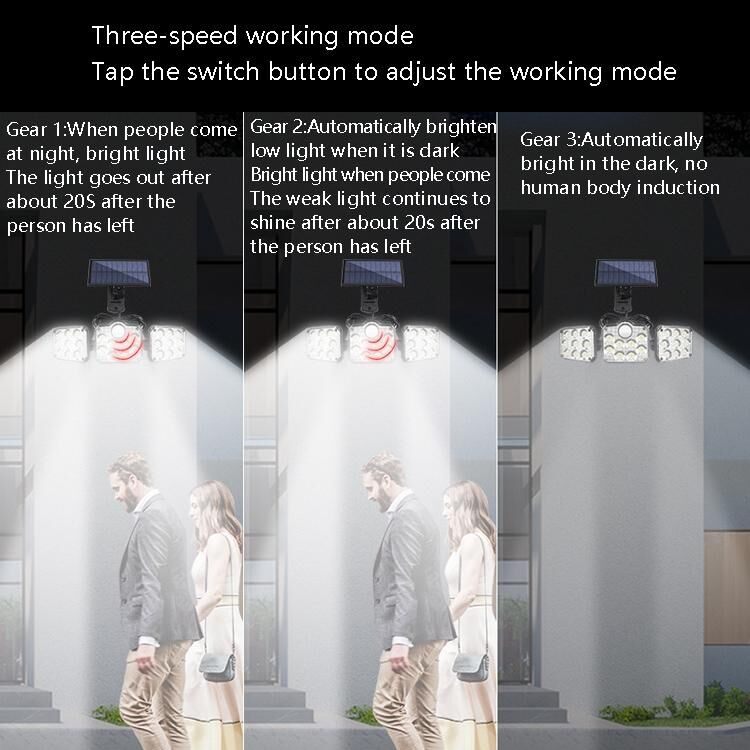 TG-TY075 Solar 3-Head Rotatable Wall Light Body Sensation Outdoor Waterproof Garden Light, Style: 138 LED Splitable