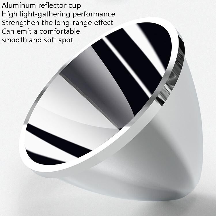 1. Ανακλαστήρας από κράμα αλουμινίου, υψηλή απόδοση συλλογής φωτός, ενισχύει το εφέ μεγάλου εύρους, μπορεί να εκπέμψει ένα άνετο, ομαλό και απαλό σημείο
