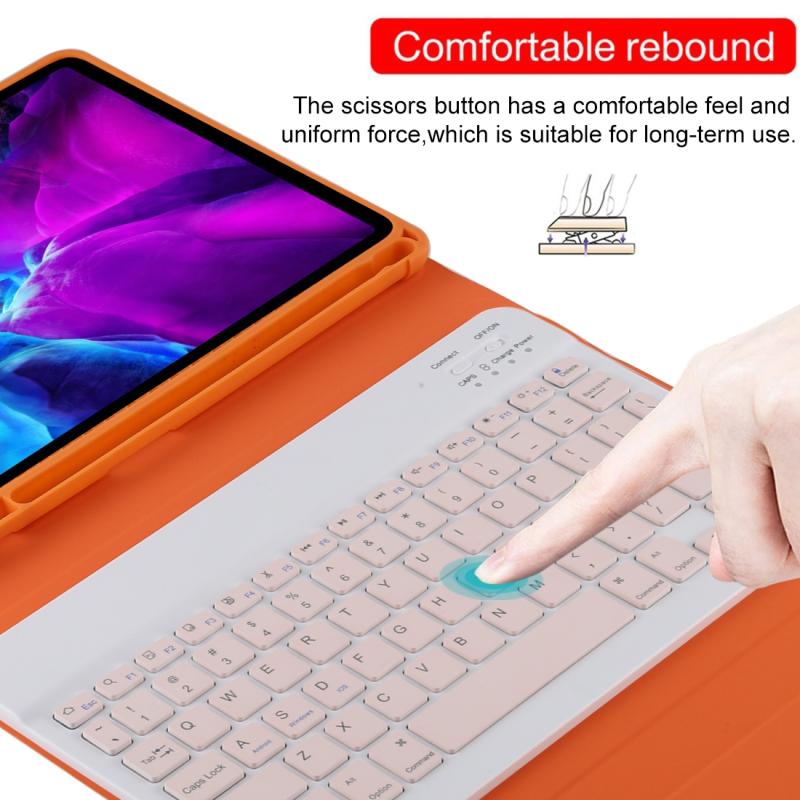 TG11B Detachable Bluetooth Pink Keyboard + Microfiber Leather Tablet Case for iPad Pro 11 inch (2020), with Pen Slot & Holder (Orange)