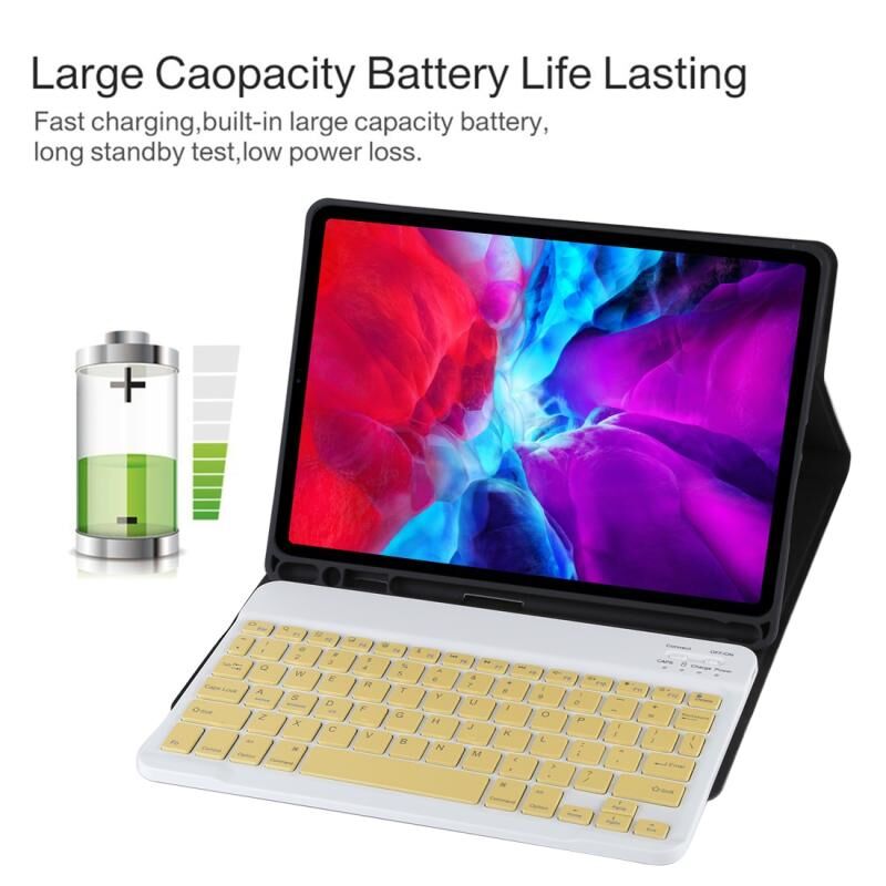 Αποσπώμενο Bluetooth Λευκό Πληκτρολόγιο TG11B + Θήκη Ταμπλέτας από Δερματίνη για iPad Pro 11 ιντσών (2020), με Θήκη και Υποδοχή για Στυλό (Μαύρο)
