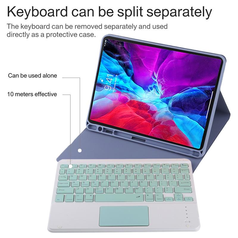 TG11BC Detachable Bluetooth Green Keyboard Microfiber Leather Tablet Case for iPad Pro 11 inch (2020), with Touchpad & Pen Slot & Holder (Purple)