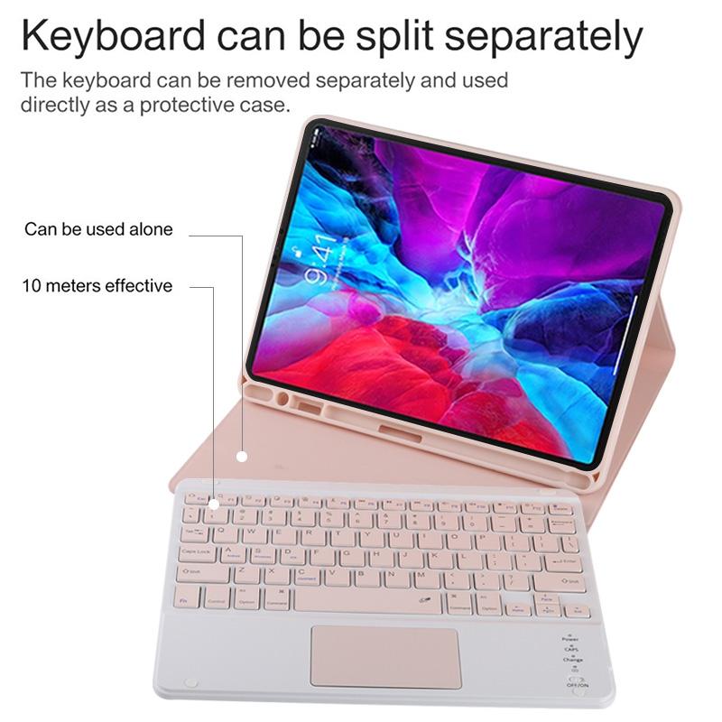 TG11BC Detachable Bluetooth Pink Keyboard Microfiber Leather Tablet Case for iPad Pro 11 inch (2020), with Touchpad & Pen Slot & Holder (Pink)