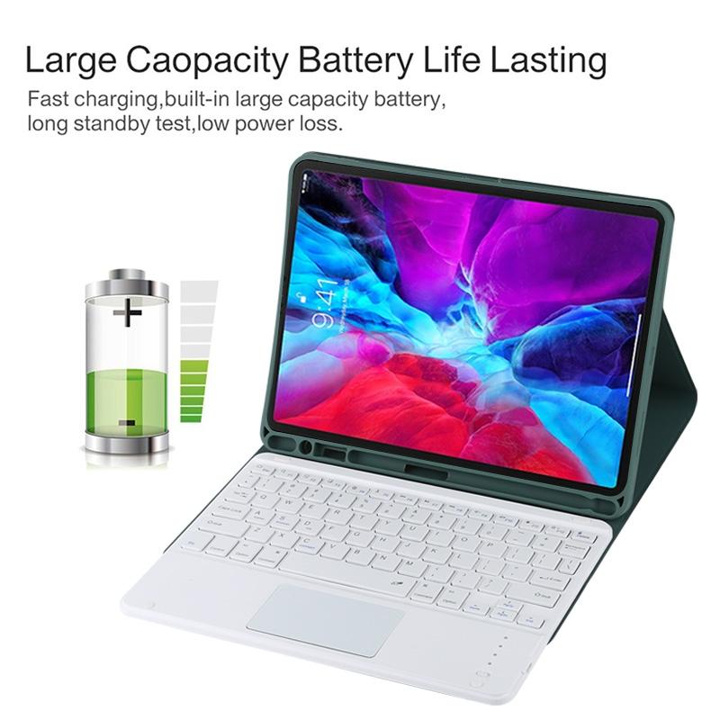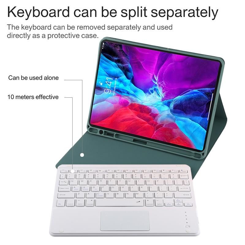TG11BC Detachable Bluetooth White Keyboard Microfiber Leather Tablet Case for iPad Pro 11 inch (2020), with Touchpad & Pen Slot & Holder (Dark Green)