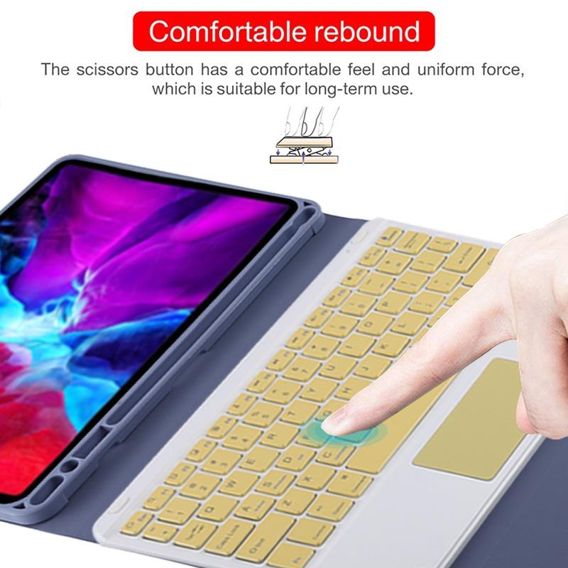 TG11BC Detachable Bluetooth Yellow Keyboard Microfiber Leather Tablet Case for iPad Pro 11 inch (2020), with Touchpad & Pen Slot & Holder (Purple)