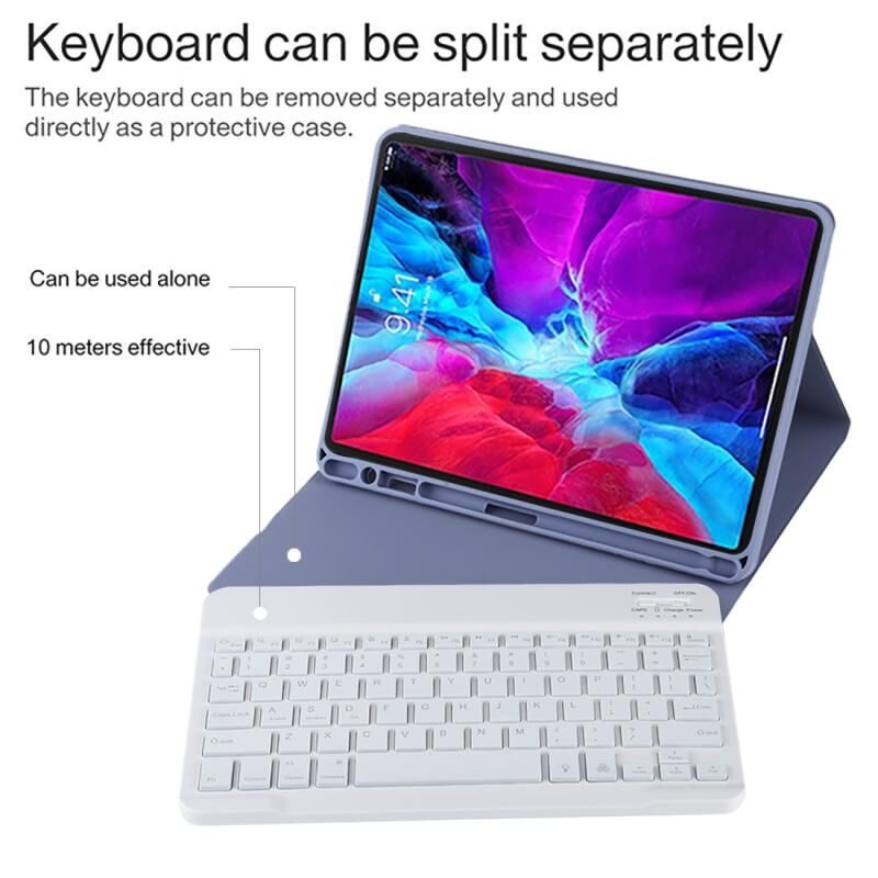Θήκη ταμπλέτας με αποσπώμενο πληκτρολόγιο Bluetooth, δερμάτινη από μικροΐνες, λευκή για iPad Pro 11 ιντσών (2020), με οπίσθιο φωτισμό & υποδοχή για στυλό & βάση (Μαύρο)