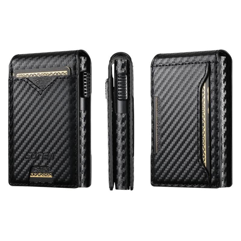 The Suteni carbon fiber pattern button automatically pops out the veneered printed card box(Black) (Suteni)