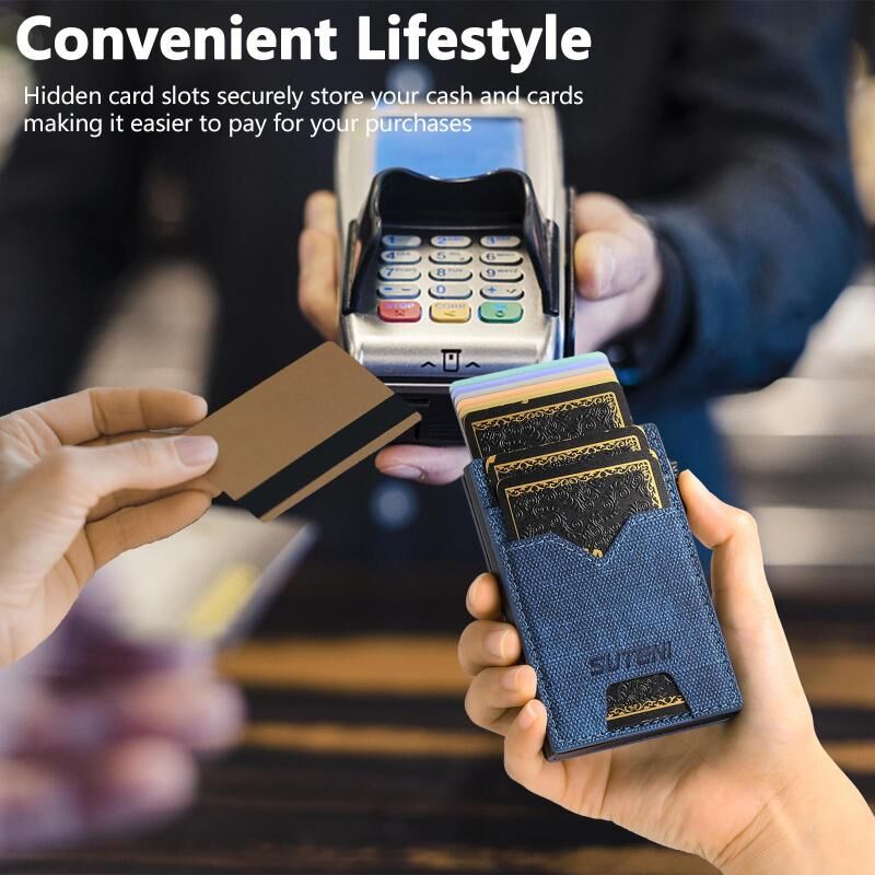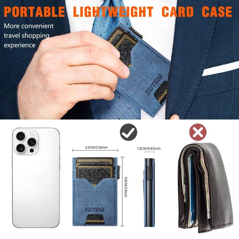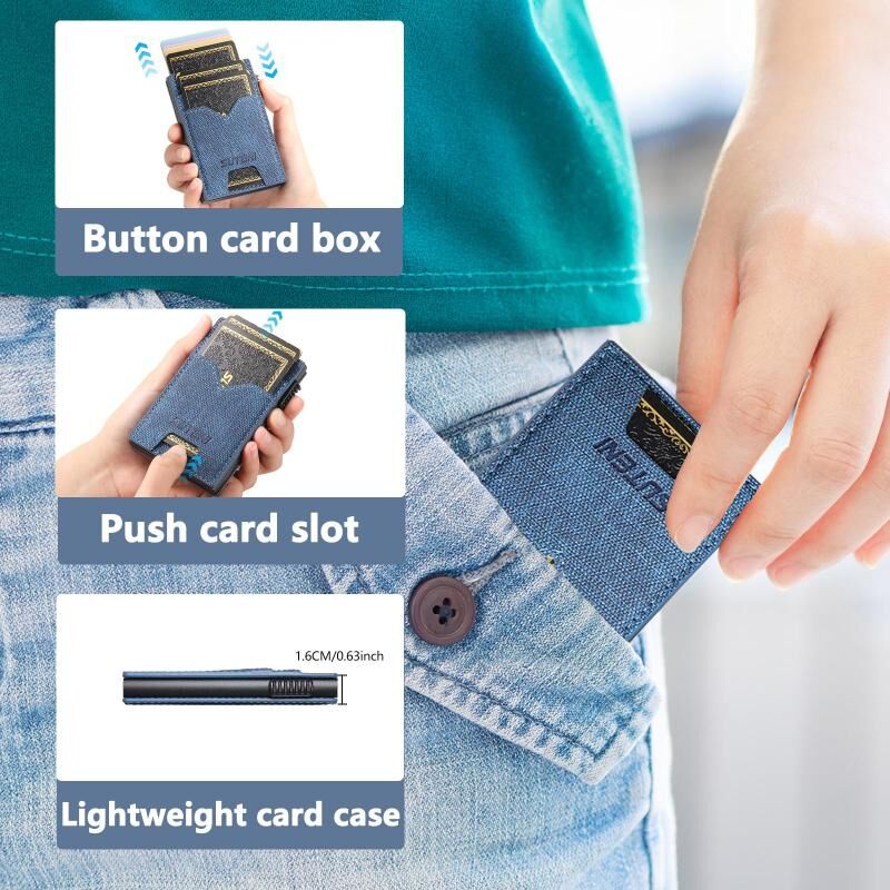 The Suteni denim double-sided card slot button automatically ejects the card box(Blue) (Suteni)