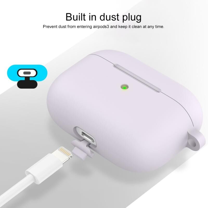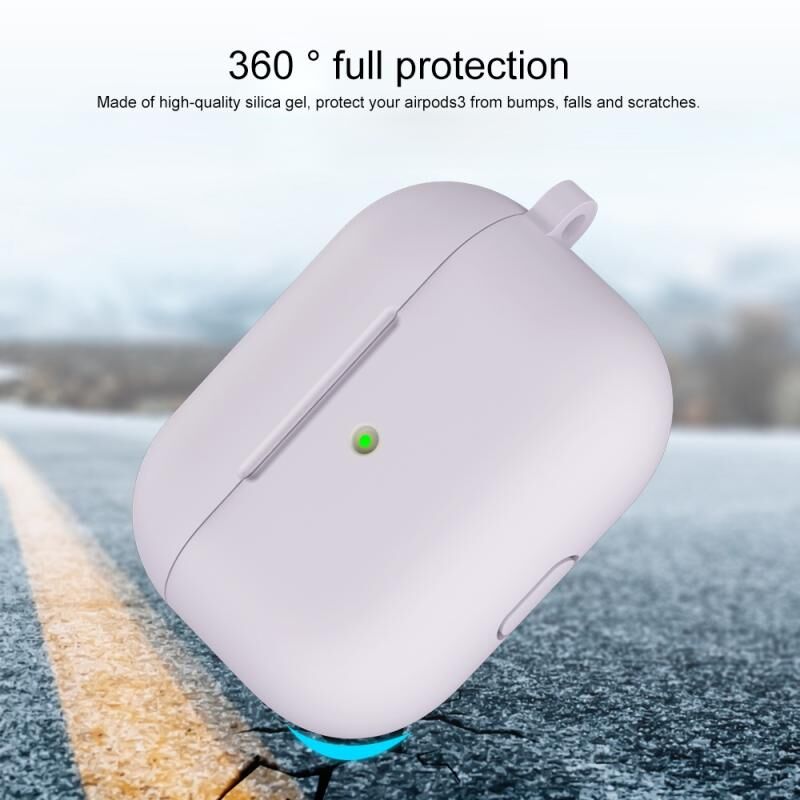 Θήκη προστασίας ακουστικών σιλικόνης με παχύρρευστη υφή και στρογγυλό πάτο, με γάντζο για AirPods 3 (Λευκό)