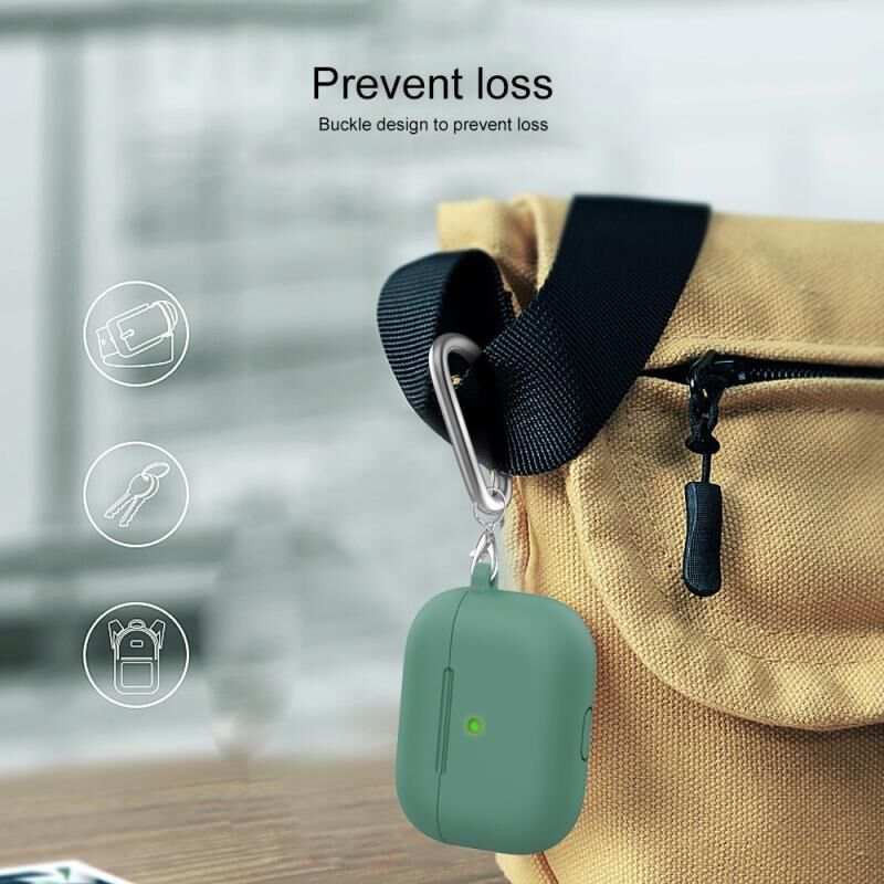 Θήκη προστασίας ακουστικών σιλικόνης με παχύρρευστη υφή και στρογγυλό πάτο, με γάντζο για AirPods 3 (Λευκό)
