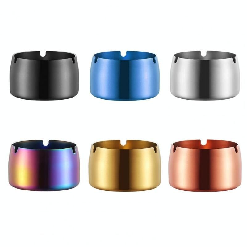 Thickened Stainless Steel Ashtray Windproof And Drop-Proof Ashtray, Specification: Medium(Natural Color)