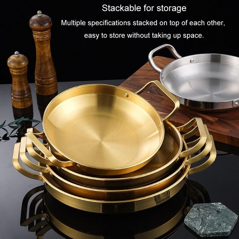 Πυκνωμένο ανοξείδωτο χάλυβα διπλά αυτιά τηγάνι θαλασσινών ρύζι τηγάνι τηγανητό κοτόπουλο δίσκο, μέγεθος: 26cm Golden