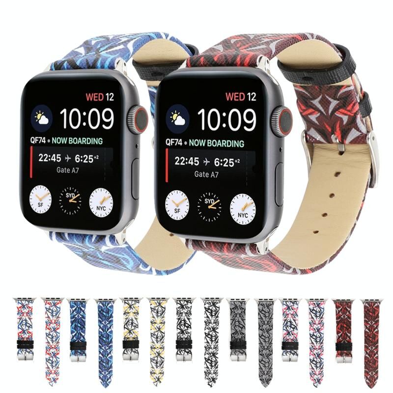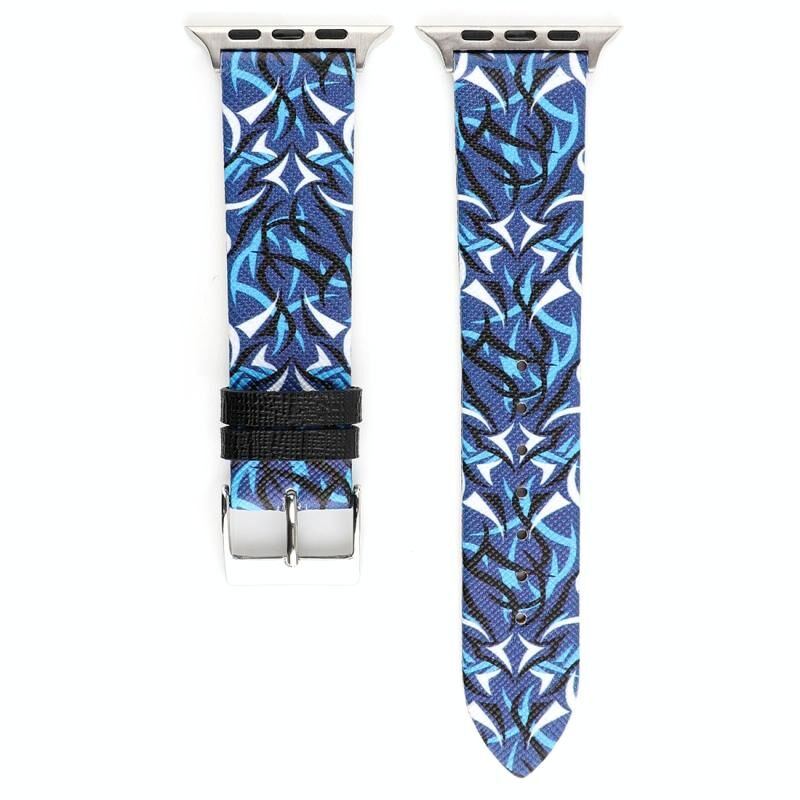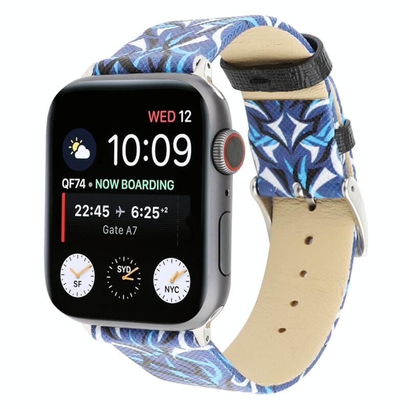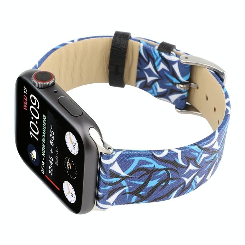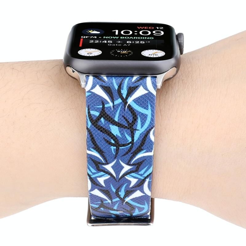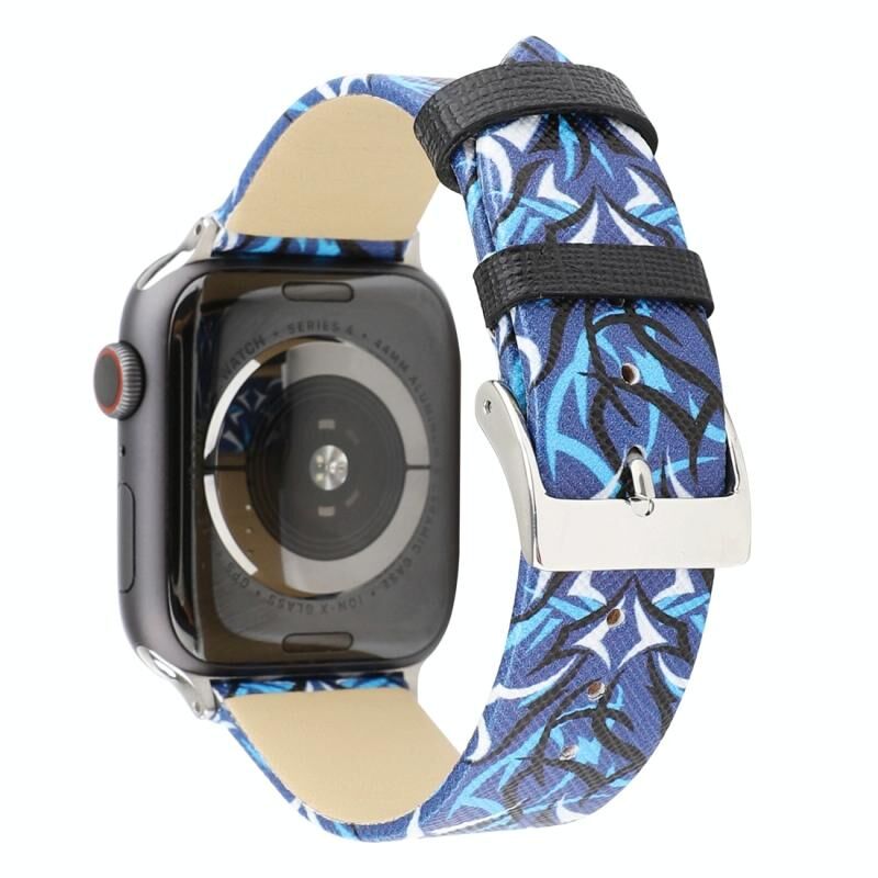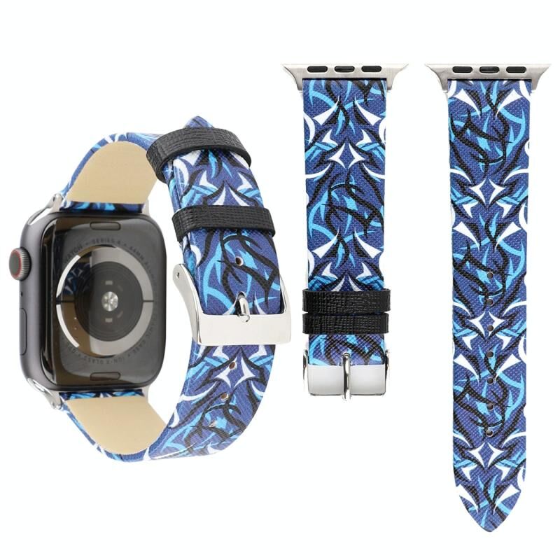 Thorns Printing Genuine Leather Watch Band for Apple Watch Series 10 42mm / 9&8&7 41mm / SE 3&SE 2&6&SE&5&4 40mm / 3&2&1 38mm(Blue)