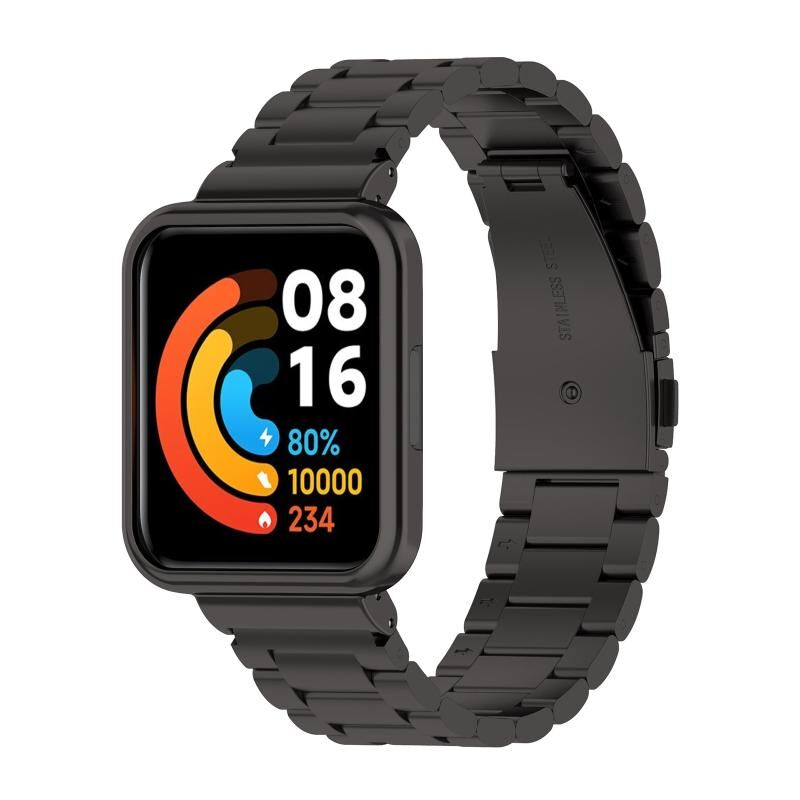 Τρεις χάντρες χάλυβα ρολόι μπάντα για Xiaomi Redmi Watch 2 Lite Διεθνής έκδοση (μαύρο)