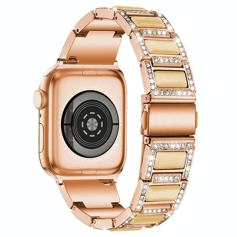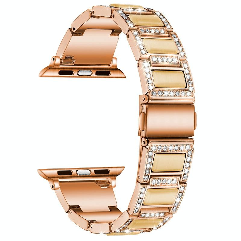 Three-beads Diamond + Gemstone Watch Band For Apple Watch Series 9&8&7 41mm / SE 3&SE 2&6&SE&5&4 40mm / 3&2&1 38mm(Rose Gold White)