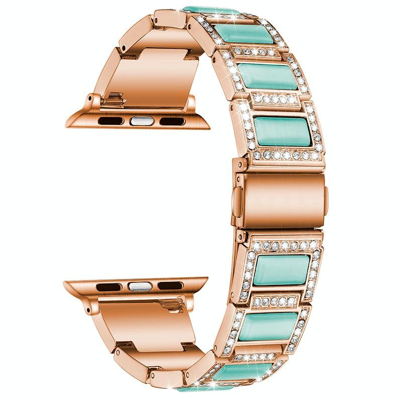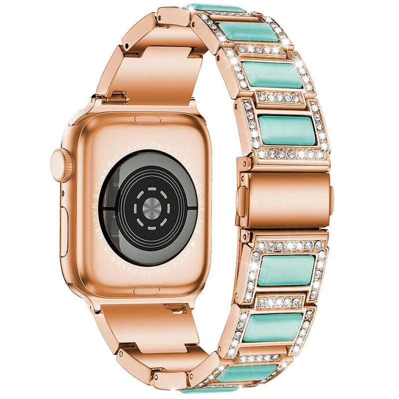 Λουράκι ρολογιού με τρεις χάντρες Διαμάντι + Πολύτιμους Λίθους για Apple Watch Ultra 49mm & Watch Ultra 2 49mm / Series 9 & 8 & 7 45mm / SE 3 & SE 2 & 6 & SE & 5 & 4 44mm / 3 & 2 & 1 42mm (Ροζέ χρυσό μπλε)