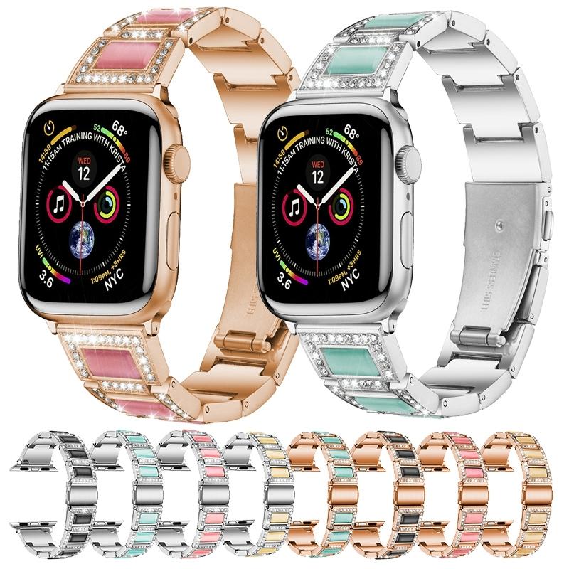 Λουράκι ρολογιού με τρεις χάντρες Διαμάντι + Πολύτιμους Λίθους για Apple Watch Ultra 49mm & Watch Ultra 2 49mm / Series 9 & 8 & 7 45mm / SE 3 & SE 2 & 6 & SE & 5 & 4 44mm / 3 & 2 & 1 42mm (Ροζ χρυσός)